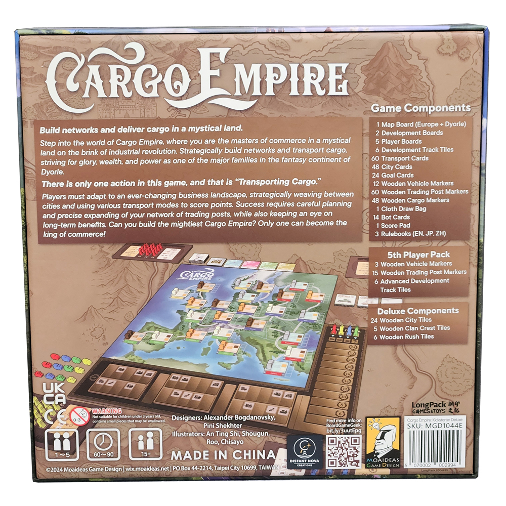 Cargo Empire is a pick-up-and-deliver board game with point-to-point network building. Players immerse themselves in a complex world of transportation networks, striving for glory, wealth, and power as leaders of one of the four major families on the continent of Dyorle.