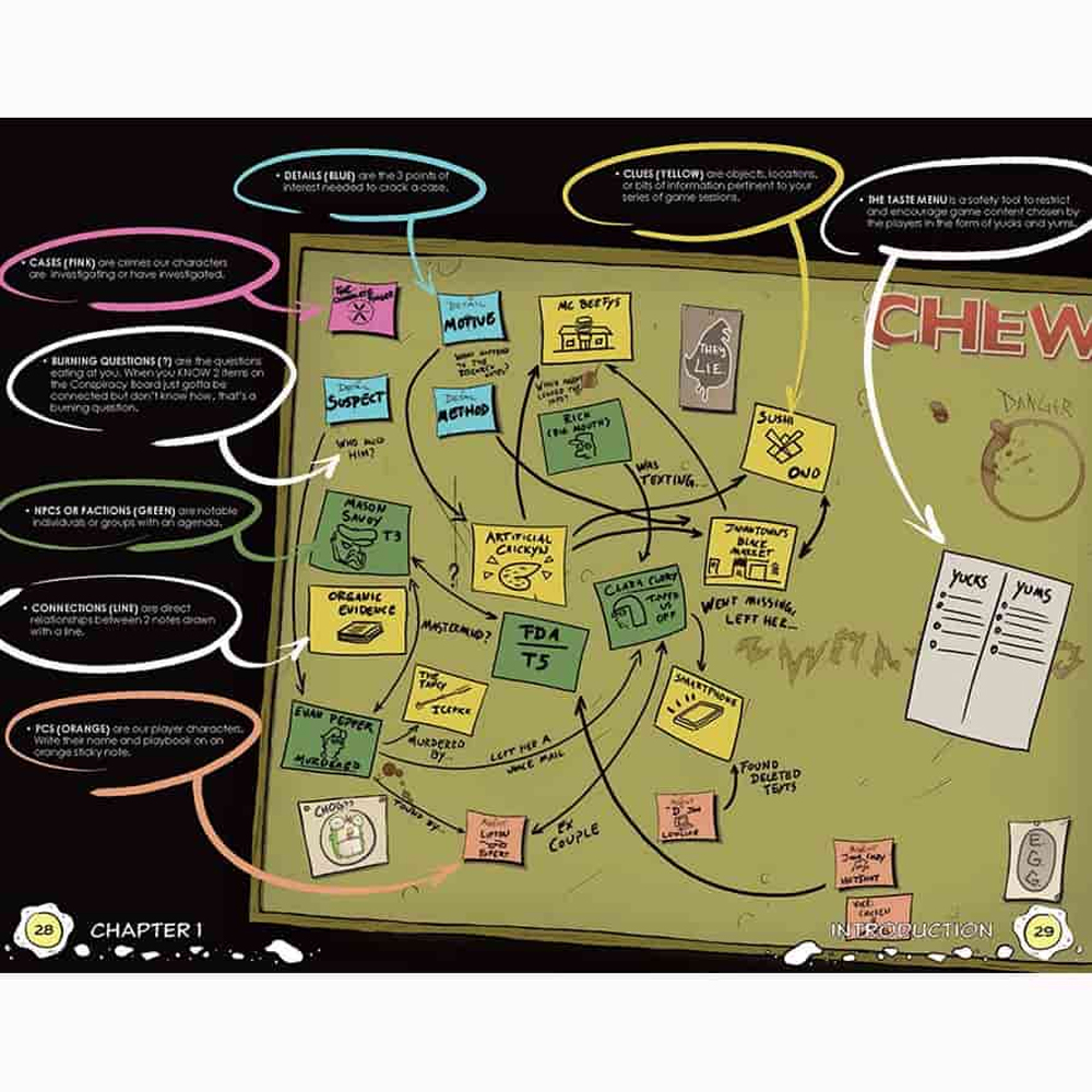 Investigate cases and collaboratively create conspiracies with this visual storytelling aid, humorous note-taking space, and influential game journal.