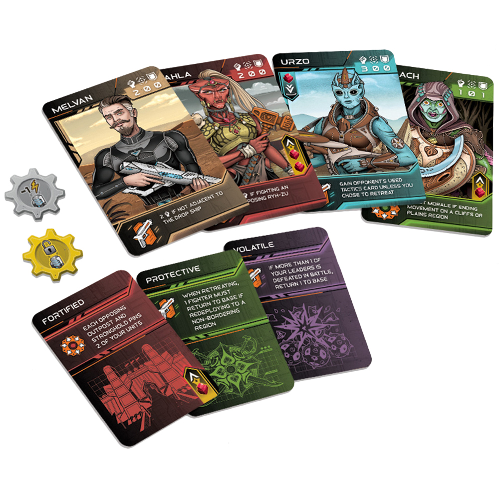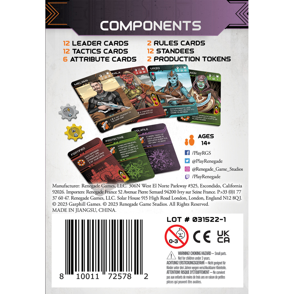 A competitive, confrontational area control game with highly asymmetric Factions. Each Faction now has 2 new Leaders to choose from. After deploying their starting Leader during setup, they must select 2 of their other Leaders, and return them to the box. This provides a lot more variability and strategies to discover within each Faction.