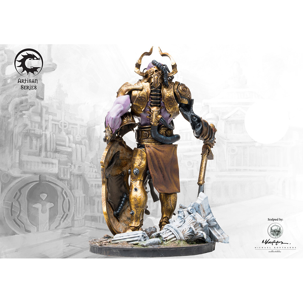 The Scholae of the City States do not know what to make of the Talos, who run counter to most things they know of the Titans. From time to time these towering warriors appear before a City State and take upon themselves the role of protector to the City and its citizens. Eschewing the sorcerous talents of their reclusive Promethean and Hephaestian cousins, the Talos relies on a hoplon (shield) and kopis (sword) to dispatch his foes with ruthless efficiency. Their role and purpose within Titan society is poorly understood and early speculation that they might be banished or exiled has been belied by the readiness of their Promethean and Hephaestian kin to follow their lead in battle.