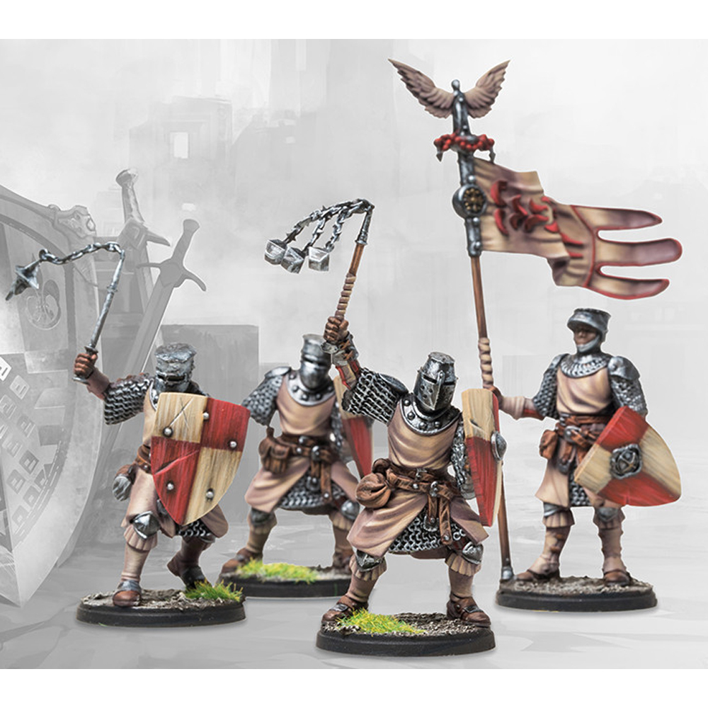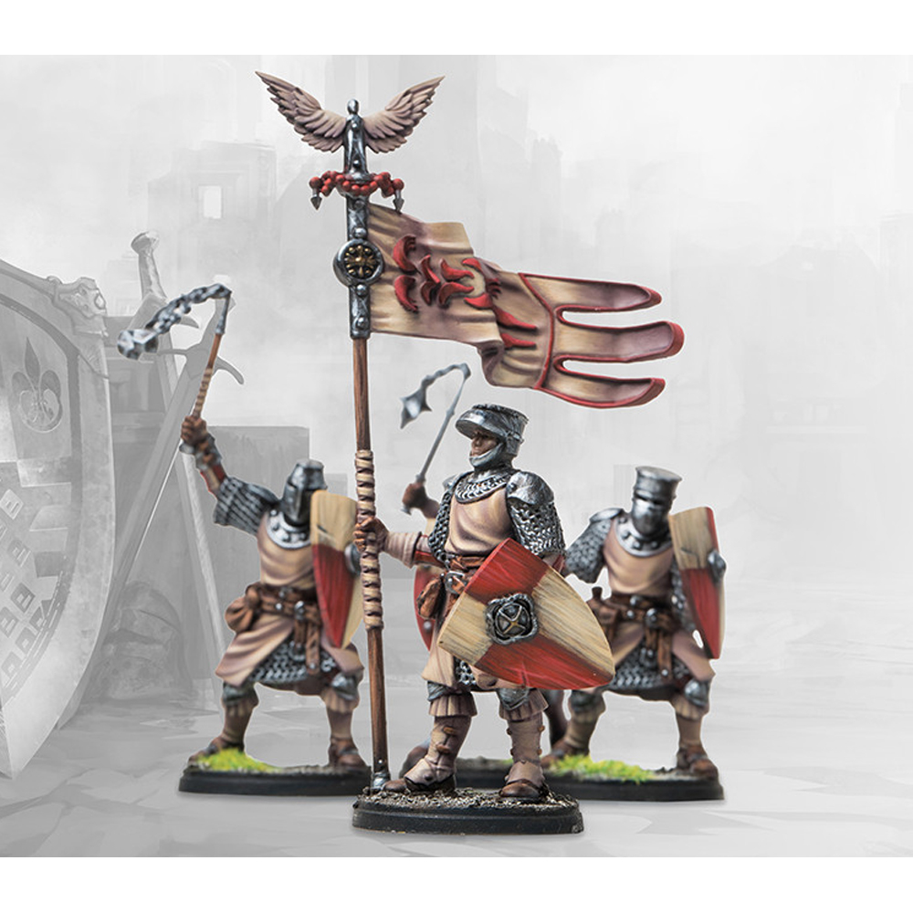 The advent of the Archangels and the machinations of the hierarchy of the Theist Church have finally granted them the spiritual and temporal power to be able to call for a Crusade. Mobilizing the population and nobility on their behalf, the Theist Church has been able to circumvent the ban on their mustering an army as the forces remain pledged and led by the Crusading Noble Lords, the Crusaders needing little further incentive than the promised heavenly reward to fall upon the enemies of the faith, their faith bolstering their every blow against the wicked and impure.