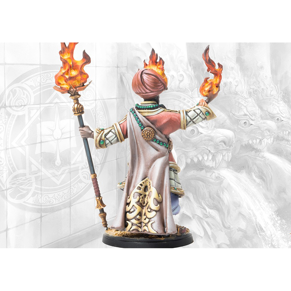 The most powerful of the Sorcerer King's Spellcasters, the Maharajah empowers Rituals to their fullest potential. Like all Sorcerer Kings' Characters the Maharajah is able to choose between spells from the court of Air or Fire which will in turn provide Mainstay Regiments of that Element. Like all Character Stands in the Army, the Maharajah has access to Spells and Rituals unique to them putting heavy emphasis on accelerating the culmination of Rituals for them and all other Spellcasters. The Maharajah is a perfect fit for the Player who enjoys bringing the full might of Rituals on the battlefield and delve deeper to this unique spellcasting mechanic.