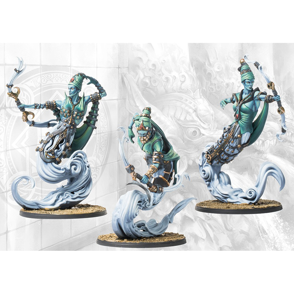 How they Play: Powerful elemental beings, the Djinn embody the free flow of the Court of Air carrying the sorcerous prowess of Air Spellcasters to the furthest corners of the battlefield. Upon their deaths their souls feed the Sorcerous Rituals of Air returning them back to the aether from which they came. Make sure to include Windborne Djinn for accurate, armor piercing long ranged support and Steelheart Djinn for quality, close combat prowess!