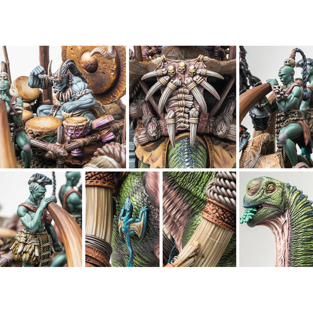 How they Play: Nothing says W'adrhun like Battlecries and lumbering beasts! The Drum Beast acts as a focal point for the faction's Chanting the Battlecry rule by manipulating battlecries, allowing a player to time them better and accelerate the rate in which Chant sequences are built.
