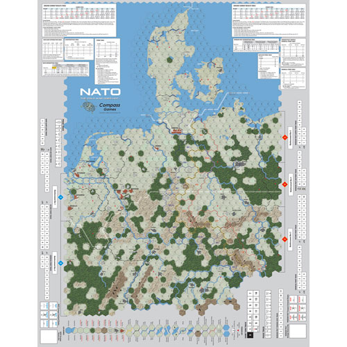 NATO is a division/brigade level simulation of a Warsaw Pact invasion of Western Europe. The game map depicts the area from Denmark to the Swiss Alps, and from France to Poland. The time frame covers the first 14 days of war, after which one side or the other has usually run out of an army. The game offers four different Scenarios, covering 1) a surprise attack from a standing start, 2) an attempt by the WP to quietly prepare without tipping NATO off beforehand, 3) an extended buildup of forces by both sides before war breaks out, and 4) an introductory scenario covering the invasion of Denmark.
