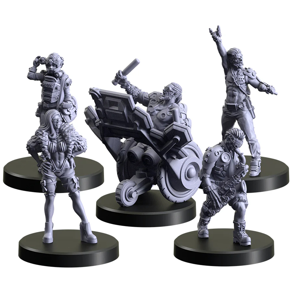 This box set includes all the miniatures and cards you need to add these Edgerunners to your gang in your games of Combat Zone!