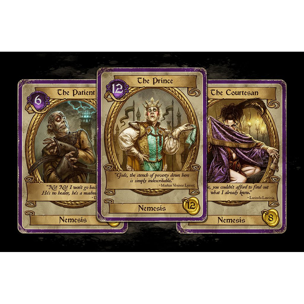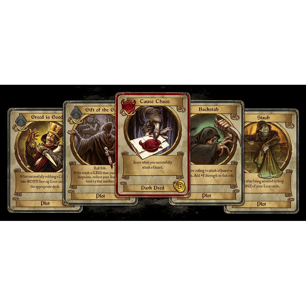 Dark Deeds, players take the role of malicious minions in service to a powerful, mysterious, and clearly villainous Patron. In the service of this dark power, minions must perform acts of thievery, violence, and betrayal, all whilst avoiding suspicious authorities, interfering do-gooders, and the machinations of their rivals. Rich rewards await the most successful minion, alongside horrific punishments for those who fail.