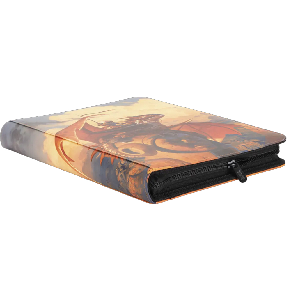 The stunning, graphic cover opens to reveal a high-quality interior, perfect for protecting your precious collection. Free samples of Dragon Shield 16- and 18-pocket pages in both Non-Glare and Clear are included. The sturdy zipper secures the binder during transport, and you can slide a label into the spine pocket for ultimate organization.