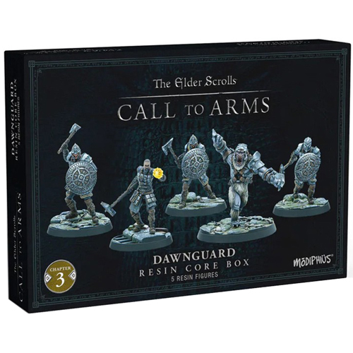 The Dawnguard stand against the tide of darkness unleashed by the Vampires. Wielding the power of the sun, the Dawnguard leader Isran, is relentless in his campaign against the Children of Sithis. He is supported by a fearsome Armoured Troll and three of the stalwart Dawnguard Warriors, unflinching in their battle against the creatures of the night.