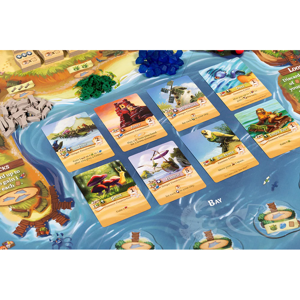 I was very curious to see how this is different from Everdell. I hear it is supposed to be lighter, but if so I think only slighlty so. Where Farshore attempted to simplify things, such putting an anchor onto a construction so you can pull a critter into your city that matches the construction's card type, it does complicate things in other ways, such as the scoring maps, the winds of change, and the rising tide mechanic. I found it very easy to pick up since it is so close to Everdell, but Farshore is not that much lighter than the original. That's not a good or bad thing. I think it strikes a good balance of familiar yet different. If you love Everdell and/or are drawn to a nautical/beach theme, I say try Farshore.