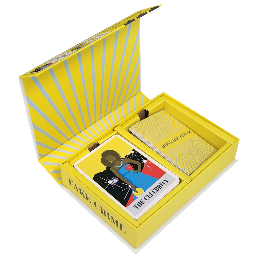 The Tarot Game of Mystery & MurderFake Crime is an intuitive yet innovative game where the art is part of the gameplay! Play clue cards to exonerate suspects by naming an object that appears on both cards. Other investigators must follow suit as everyone scrambles to be the first one to catch the killer. Pick your suspect and pit your sleuthing skills against your rivals in this simple yet sophisticated game of mystery and murder. Don't have any rivals? Try the solo mystery challenge mode.