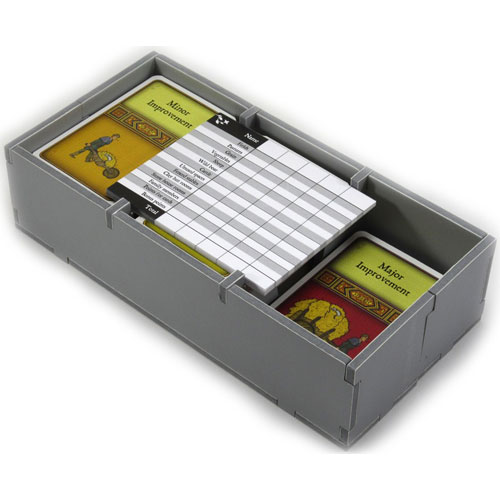 This box insert for Agricola is very well thought-out. Each individual type of resource has its own compartment, and all the tiles, cards, and player pieces are logically separated. Additionally, because it is made out of evacore, it does not significantly add to the weight of the box. The assembly directions are well-written, although going to the website of the manufacturer and looking at their assembly videos is also useful. Great product!