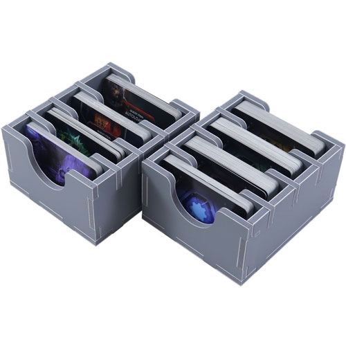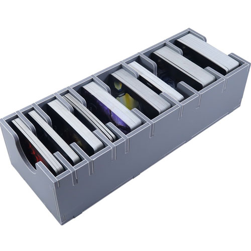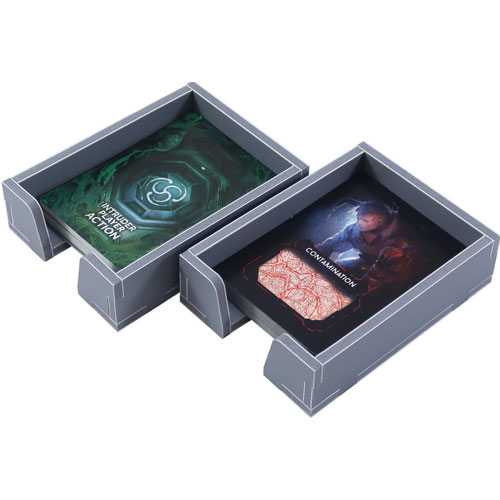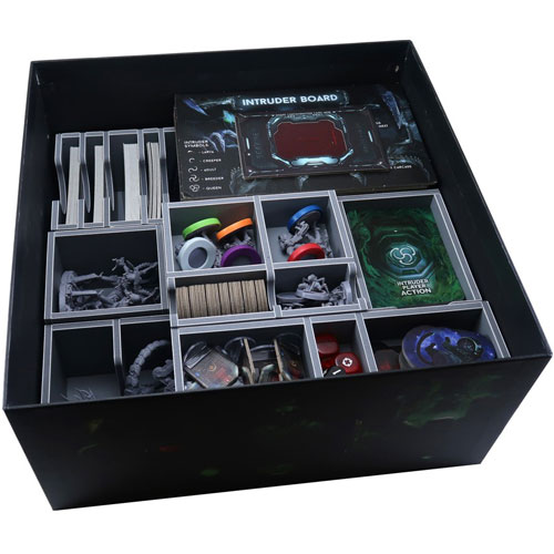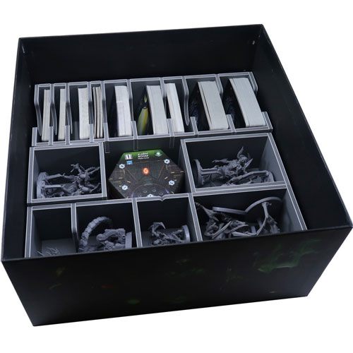 I have all the characters from the base game, the medic, and Aftermath added in. I removed the card holders, as I don't really use those, and fit in the breakable doors from the newer campaign. With a little lid lift, I have all of the components of Aftermath in there as well. The original insert was decent, which is a real shame, but wasted too much space and worst of all, was very difficult for accessing the cards. The folded space insert fixes this, which makes set-up a lot easier. Plus, plenty of space for cards, while sleeved.