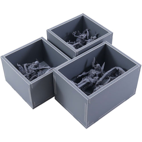 This organizer is fantastic. Everything fits nicely in the box without any problems. Each container is easily retrievable so the build-up and tear-down time of the game should be shortened. If I were to list any negatives it is that a few of the containers require multiple figs to be placed right on top of each other and if they were painted I fear chipping may be an issue. Overall solid 5.