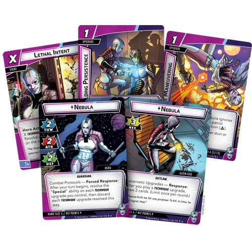 The Nebula hero pack brings a new hero (anti-hero?) into the Marvel Champions system. More importantly, it plays very differently from other heroes. Long story short: you have to think a turn ahead. Nebula´s trademark cards are ALL about techniques. They all provide immediate benefits, but their true benefit occurs when you start the following turn with these in play. Then you get a powerful secondary effect before discarding them once again. It truly is a balancing act where switching to alter-ego and hero is part of the strategy. Her trademark support ally is Gamora, but just like her sister´s hero pack, she is also her nemesis and can certainly put a wrinkle in your forward-thinking plans when she comest into play. Additional important cards/abilities: Alter-ego form: draw 2 cards after you play an upgrade card Nebula´s Ship: Excellent support allowing to generate a wild resource on demand. Combat ready: Add 2 technique cards from discard pile to draw later or discard cards until you discard a technique and put it into play. Perfect when you just ran out of luck in getting techniques There are many other memorable and unique cards that make Nebula a very fun hero to play. Her base constructed deck comes with Justice aspect cards. Very fun and challenging to try to stay a step ahead of the encounter set.