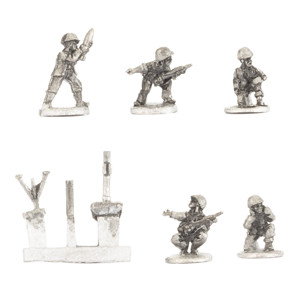 The four mortars assigned to each battalion would work closely with the Marine riflemen to spot targets. The 81mm mortar platoon was often the target of counter-battery fire due to the devastating effect that they had on an infantry attack. The M1 81mm mortar is capable of laying down heavy barrages of high explosive shells. The 81mm mortar is the largest weapon available at battalion level and is often deployed in support of the Marines at the front. As they could fire at a high trajectory they were perfect for hitting Japanese soldiers hiding in defilades waiting to attack.