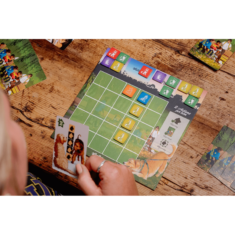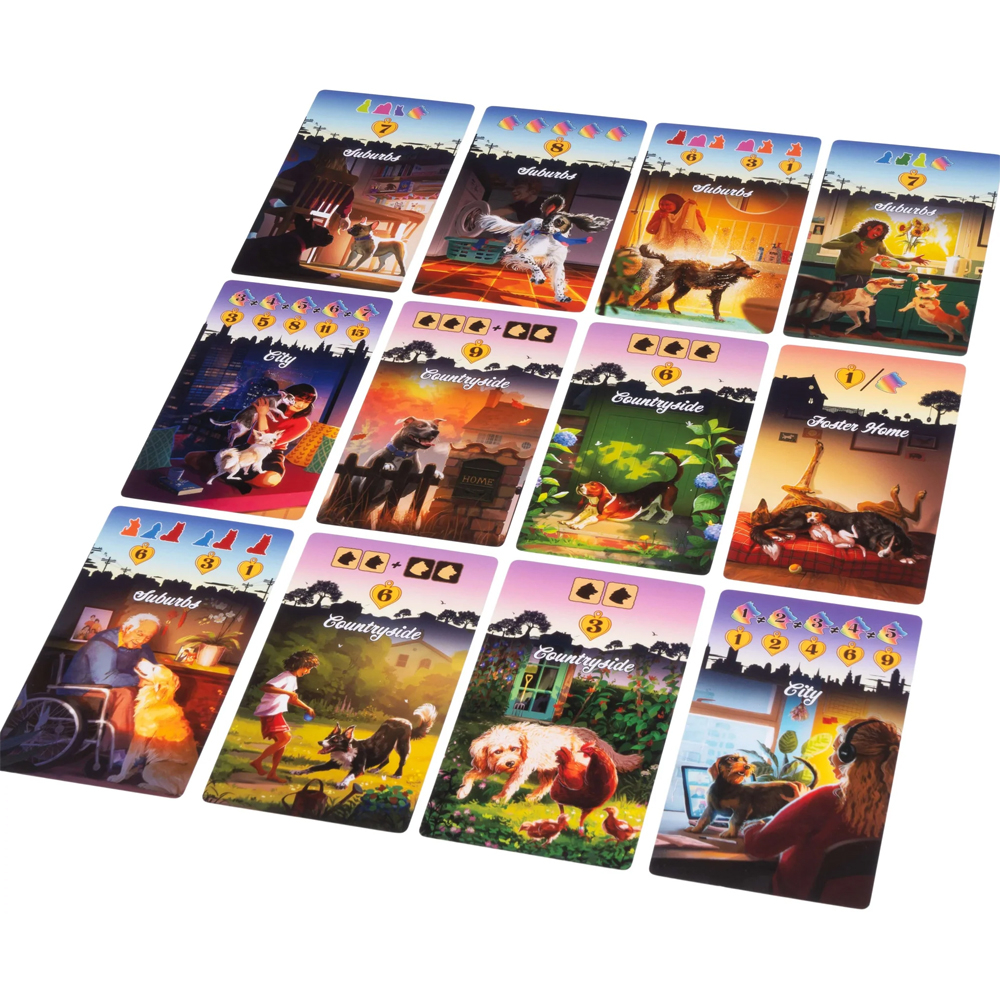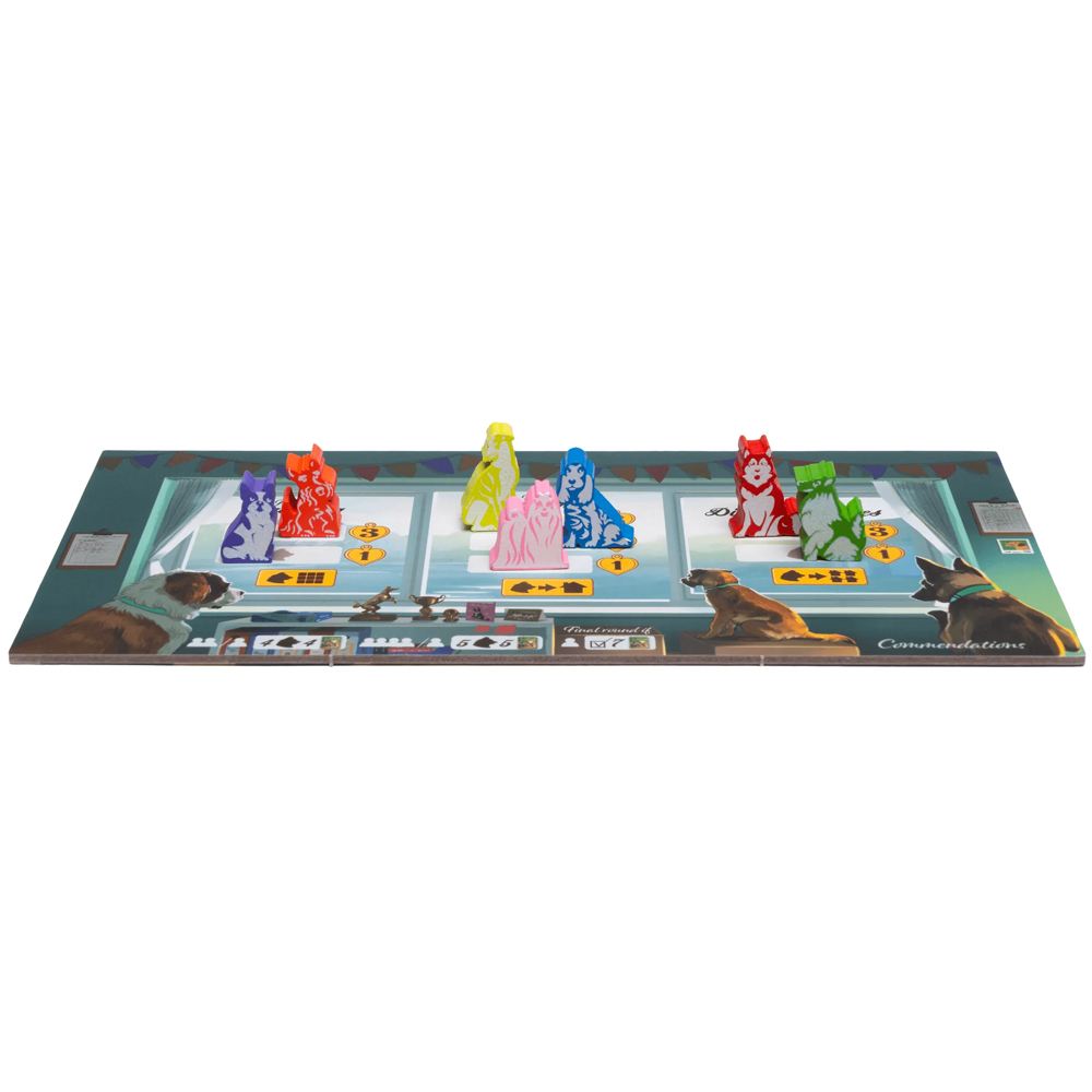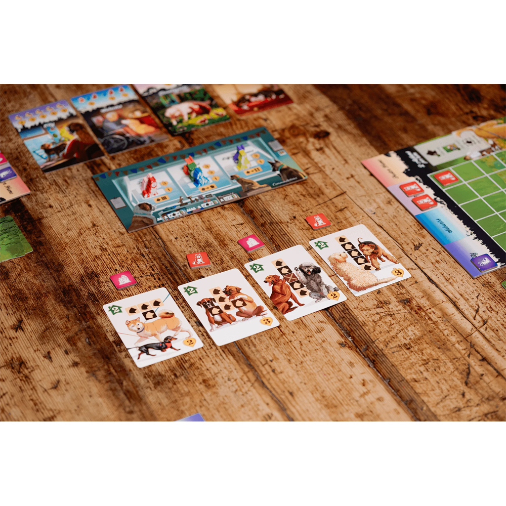 The puzzle of the game is interesting, but the theme lends itself to be more appealing to my family than it's actually fun for them. Also, the colors aren't all consistent. The scoring cards use a light green where it should be yellow. The pink dog tokens are often confused as red dog tokens, which disrupts plans. In short games like this one, even as not very competitive people, when that happens, it just kills the mood and it's happened 80% of the time so far (we have a big family). At this point, each person gets it, but also, doesn't want to play anymore, and they've each played about 3 times. The dogs brought them in, but the puzzle didn't keep them.