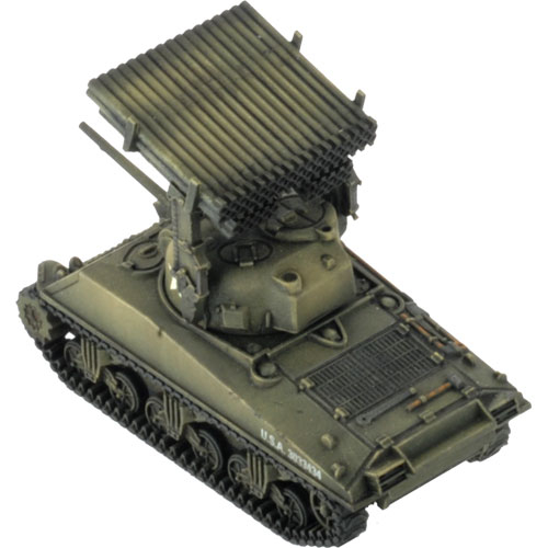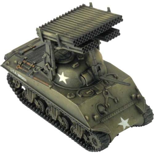 These launchers are named after the Calliope (pronounced Kal-lee-ohp by some and Kal-lie-oh-pee by others) steam-powered organ played at carnivals and circuses. The launcher's frame could not stand up to the main gun's recoil, so the crews became dedicated rocketeers, forgoing their main gun completely. Each Calliope rocket launcher system fired a bombardment of sixty 4.5" (114mm) rockets. Individually, these rockets may not cause much damage, but group 60 to 240 of them into a single salvo and the enemy will have nowhere to hide!