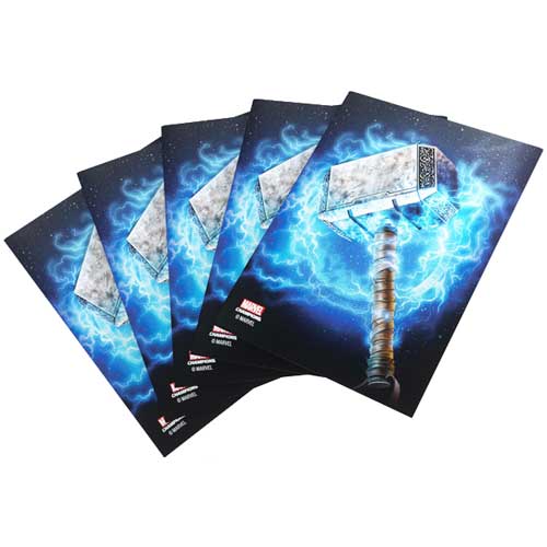 These gamegenic sleeves might seem like an unnecessary flair to the game, and they might quite be. Surely there are other sleeves in the market, but the art in this product is remarkable, Thor's Hammer Mjolnr is beautifully rendered with great contrasting dark and lightning, and adds a lot of character to the table, adding yet another great aesthetic dimension to a great game. The sleeves shuffle well and seem quite resistant, they come with a clear sleeve for the double sided character card. The number of sleeves is greater than the ideal deck, hence it allows for spares or sideboard builds as necessary. Remember that you will need different sleeves for the Characters Obligation card, and nemesis deck (they are yellow backs like all encounter cards).