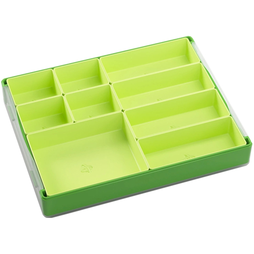 The color schemes from this brand are really pleasing to the eye. It has round edges for safe grabbing and if you have several of these you can even mix&match with different colors to categorize even better or give the organizer your own style.