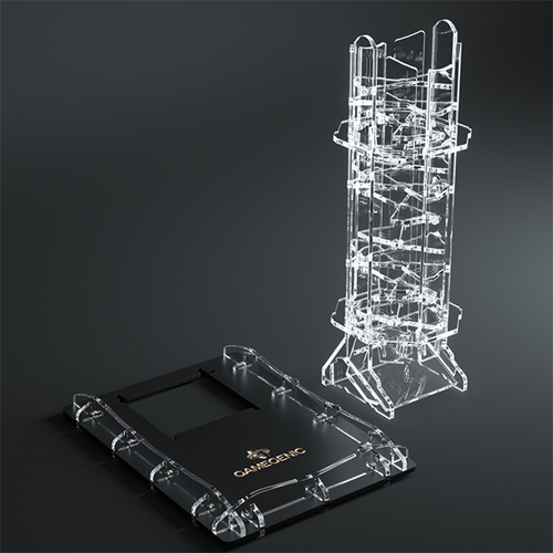 This looks quite amazing when it's together and you're dropping math rocks in it and watching them work their way down the spiral crystalline stairway. Most dice work great, d6 can sometimes get hung up, but less often if you drop 'em in from 2-3 inches above the tower. The ones you will have the most trouble with are the traditional pyramid-shaped d4s as they tend to get stuck easily. One word of caution: the instructions say to use gloves when assembling, I highly recommend doing so. You will be removing pieces from acrylic sprues which can cause tiny acrylic splinters. Those things aside, it is a spectacle to witness once it is together and being used. It's pretty satisfying to drop 2 d10s in there at the same time, one on each side and watch 'em work their way down together. Highly recommend this tower for the bonus aesthetic as well.