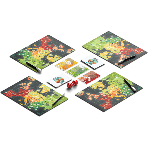 The map starts empty and you'll be adding the numbers (representing the dates) each turn. You'll roll dice to determine what numbers to write, and flip cards to limit which regions you can write in. It will seem easy at first, but be careful not to paint yourself into a corner.