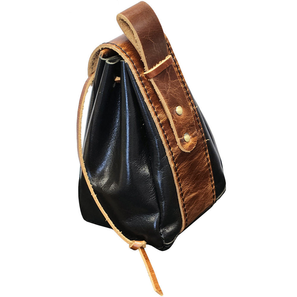 Made from super tough buffalo hide and solid steel hardware, these dice bags are made to last a thousand campaigns! Each dice bag comes with a removable dragon eye charm, a loop to hook onto your belt or bag, and a snap to keep your dice secure. These bags can hold 50 dice comfortably (including metal and odd sizes).