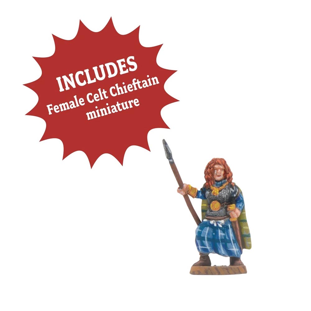 In addition to all of these awesome sprues, the Celt Army includes a 12-page army list and scenario booklet allowing you to field it in games of Hail Caesar Epic Battles, and an exclusive female Celt chieftain to inspire your forces to victory - only available in the Celt Army box.