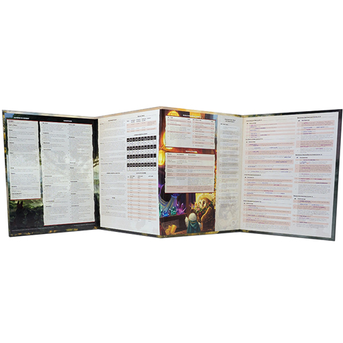 This GM screen is a tool for all your 5E games. It comes with handy tables and charts going over the following information: