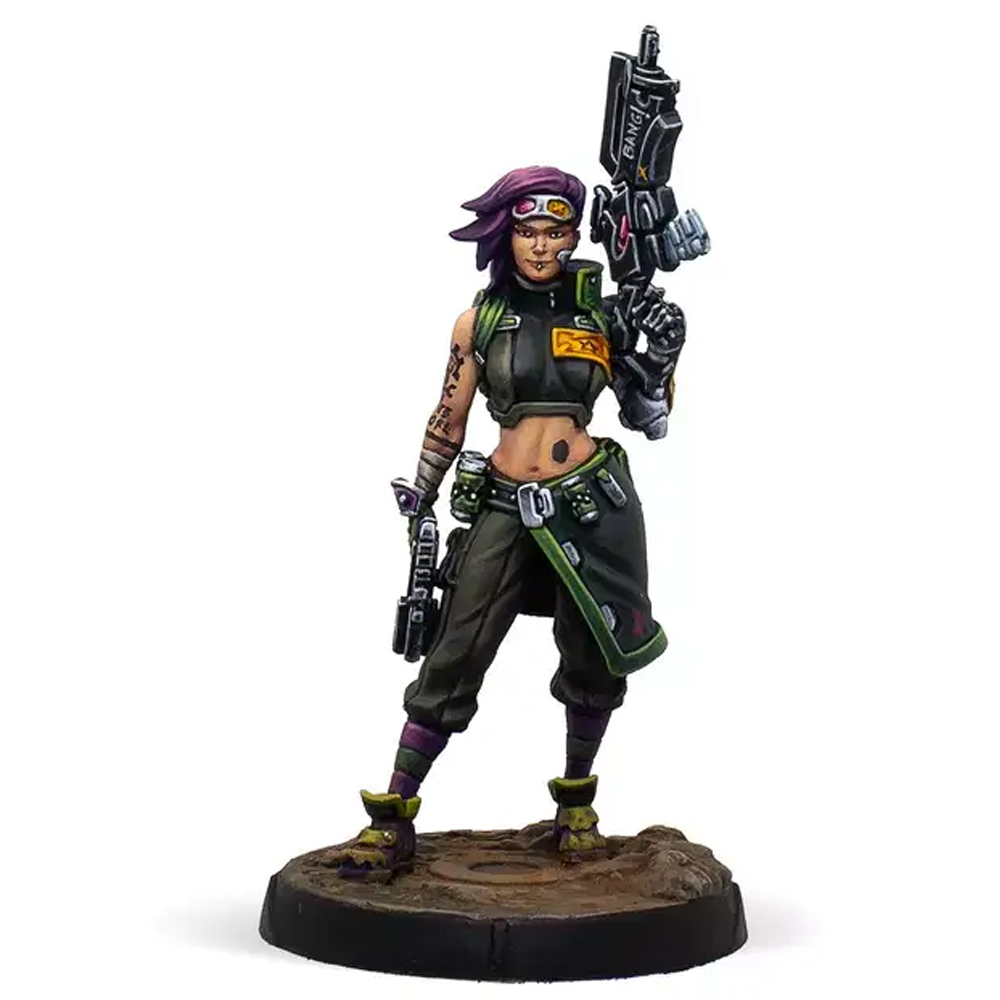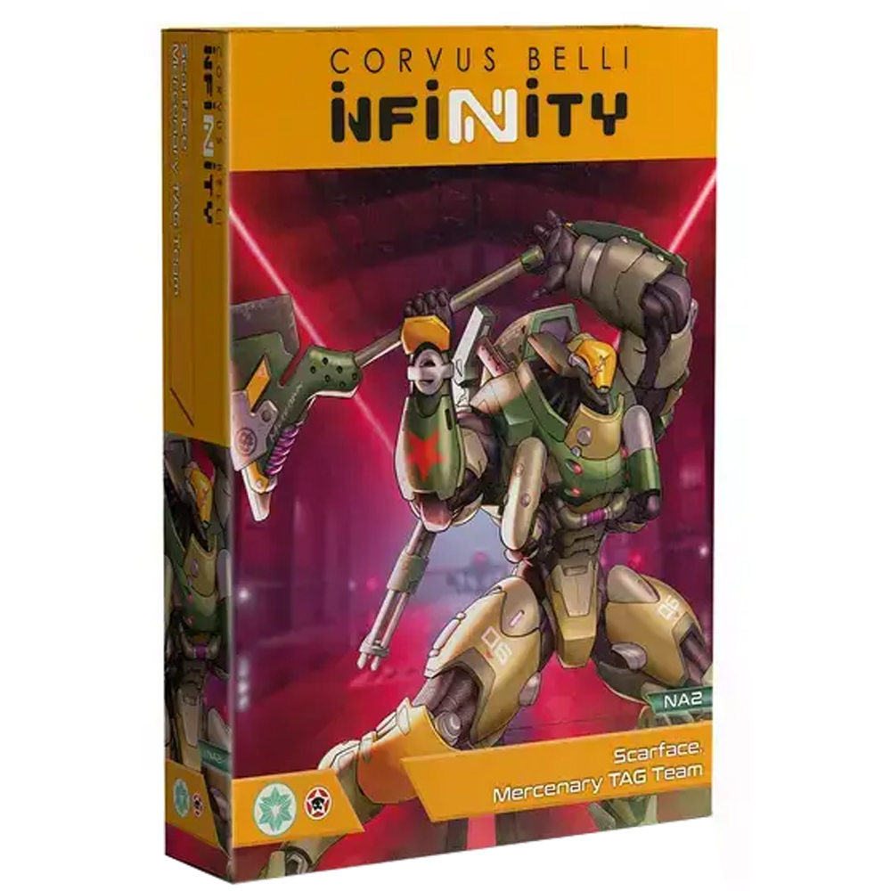 This box includes two plastic resin miniatures of NA2: one Scarface armed with an AP Spitfire and Panzerfaust, and one Cordelia Engineer. It's been a while since the first version of this team was shown at GenCon, but the wait for a re-sculpt is over and you can now get this new box. You have seen them as a pre-release at GenCon, now you can get the box of these mercenary siblings: a TAG and an Engineer for hire. An unbeatable combo!
