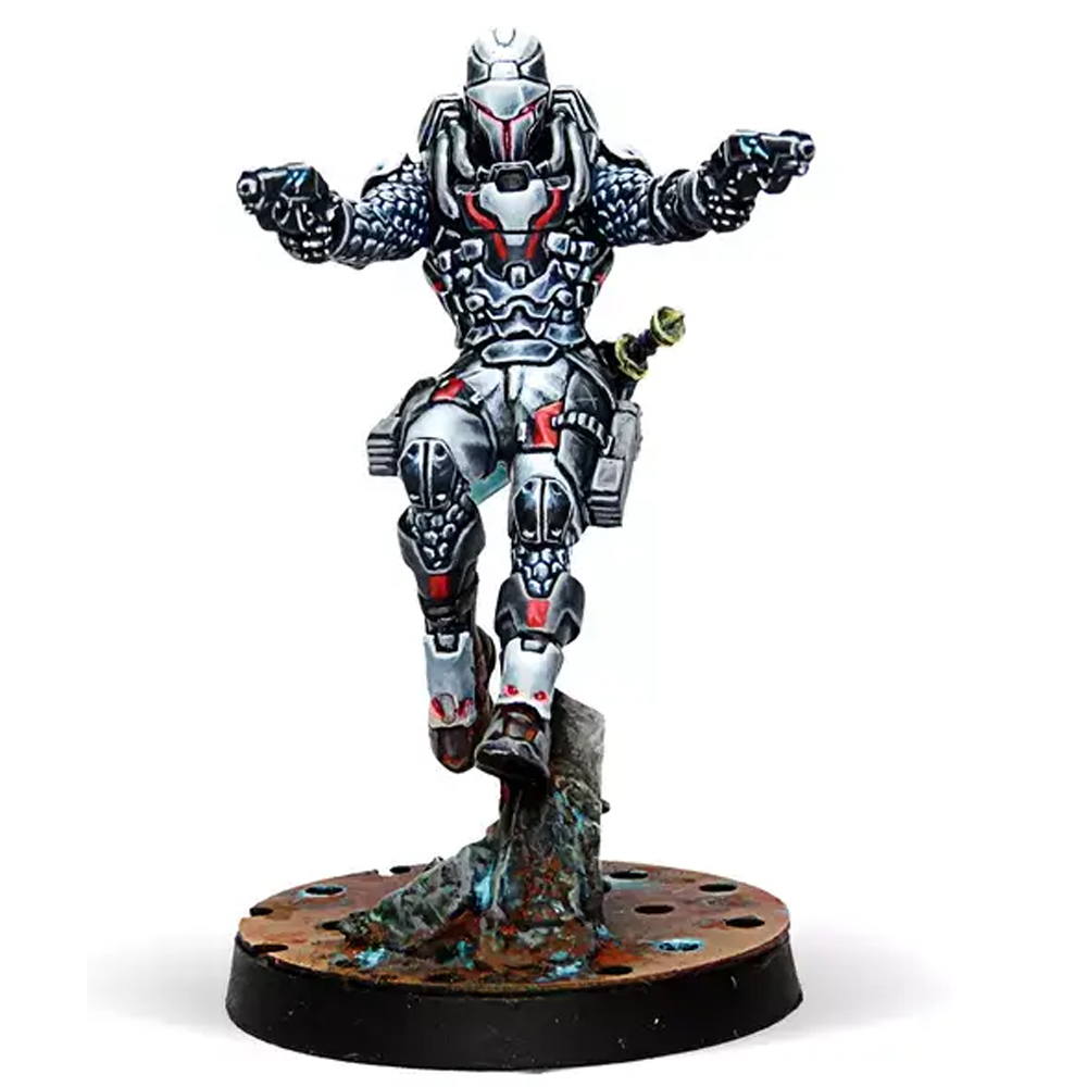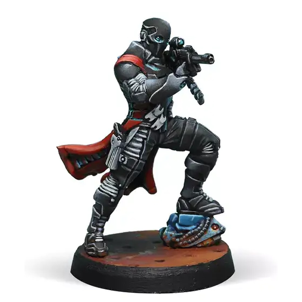 This box includes three metal miniatures for Nomads: One Taskmaster with HMG, one Grenzer with MULTI Sniper Rifle and the special character Perseus with Heavy Pistol. With this box you can expand your options when creating an Army List and continue the Nomads collection you started with the