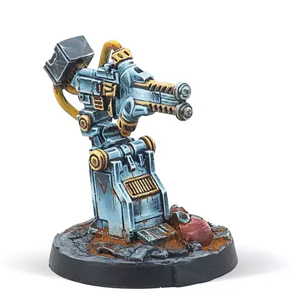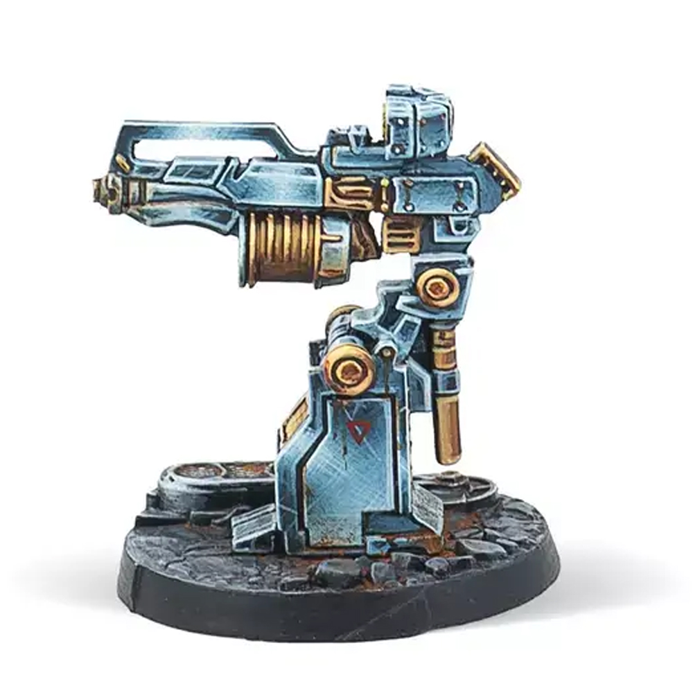 This box includes four metal miniatures for the Yu Jing's Imperial Service: one Shenji Ying with Combi Rifle, one Yao Zao Servant Remote, one Armed Turret with E/Mitter, and one Armed Turret with Adhesive Launcher Rifle. The Shenji Ying are elite combat engineers of the Imperial Service, combining technical expertise with frontline combat skills. They excel in breaching, fortification, and supporting Yu Jing's swift, disciplined assaults. You cannot miss this release to complete your force from the