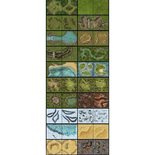Create your own wild areas with 2 books that line up to create endless layouts, giving you a 24" x 24" map area from books that fit in your bag! Reduce your game prep time with these portable maps!
