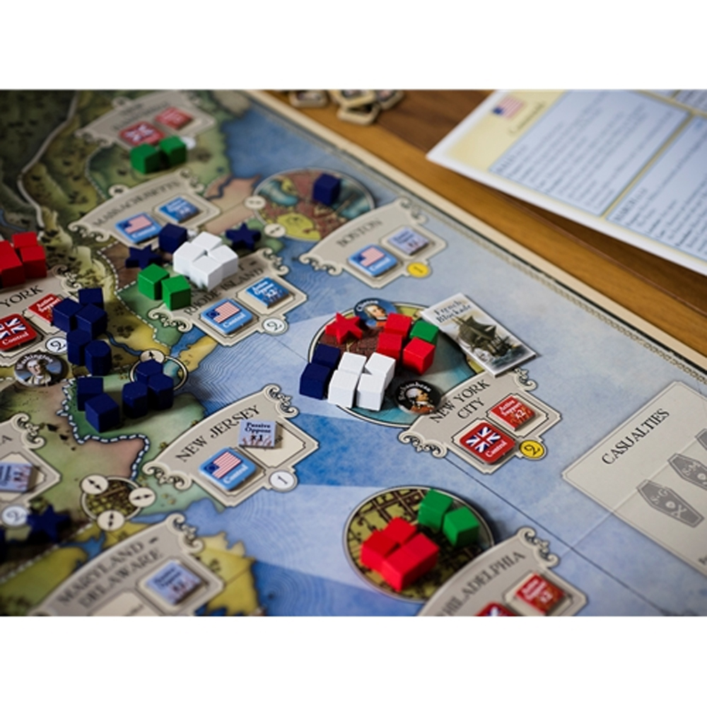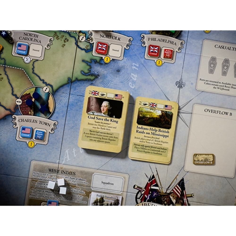 Volume V in the COIN series allows players to relive the struggle of the American Patriots against the British government. Building on series creator Volko Ruhnke's innovative work, designer Harold Buchanan has applied his knowledge of the American Revolution to craft a new perspective on the struggle that built a nation.