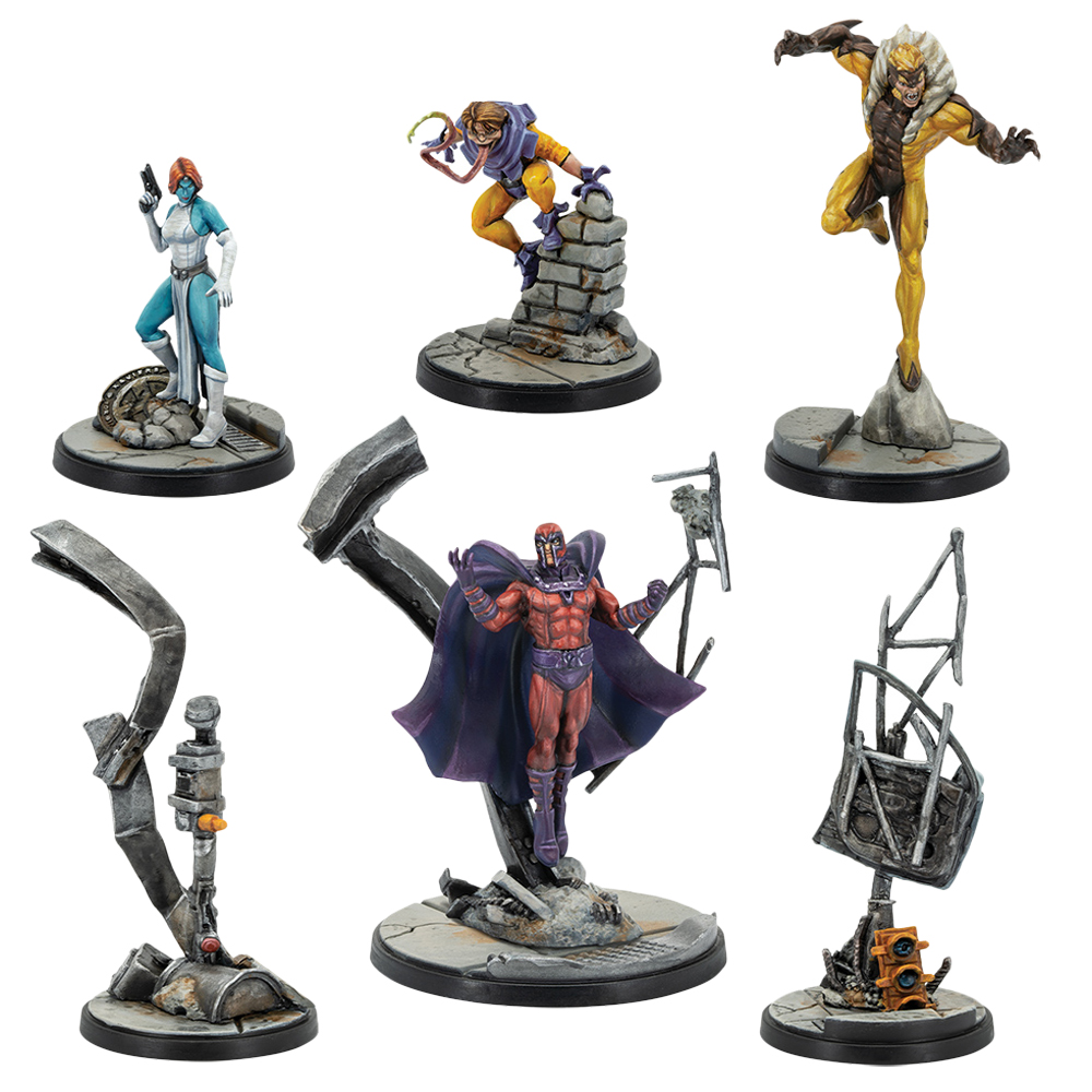 This Starter Set contains fan-favorites from both the X-Men and the Brotherhood of Mutants. Cyclops, Wolverine, Storm, Beast, Rogue, Gamit, Magneto, Toad, Mystique, and Sabretooth will show any set of challengers the true power of mutantkind!
