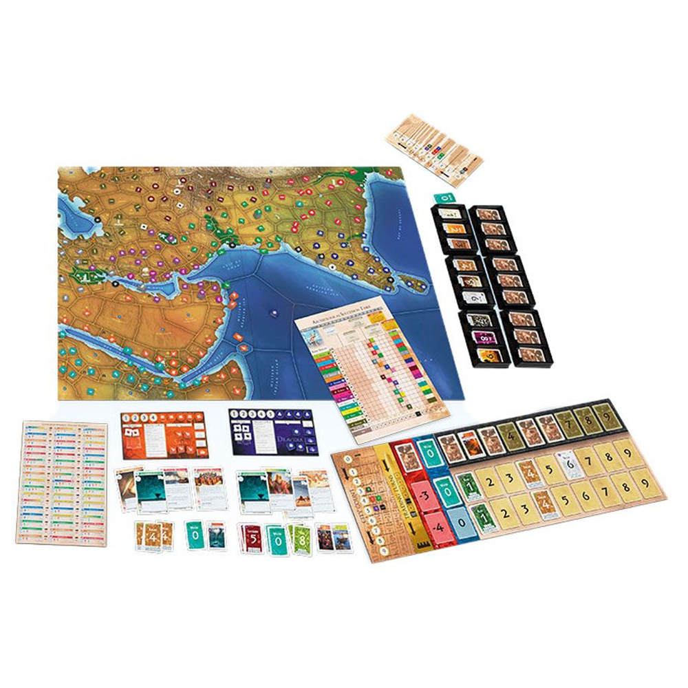 Mega Empires: The East is a stand-alone game in the Mega Empires line, a new intricate board game designed for 3 to 9 players, immersing participants in the rise and development of ancient civilizations over a span of 8000 years, set in a different part of the world. Players will guide their civilizations from the Middle East to India, focusing on territorial expansion, cultural and technological advancement, trade, diplomacy, and overcoming various calamities.