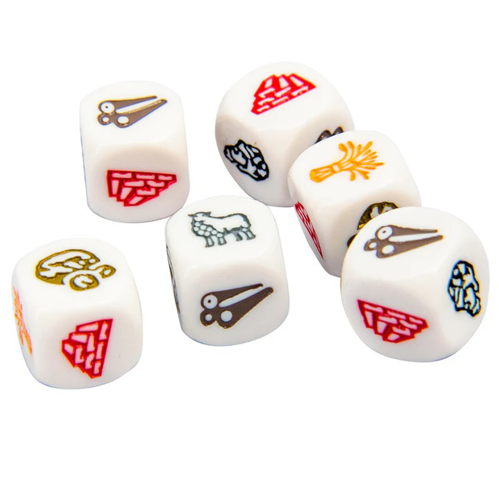 Players take turns rolling dice to get specific combinations to build roads, settlements, and cities, and hire knights. They then write the results on the page as well as their score for the round. I like to use plastic sleeves and dry erase markers to reuse the pages from the booklet that comes with the game, but it comes with enough pages for several games for the recommended player count. It's not a good substitute for regular Catan, but if you're looking for a light dice game to play with a few friends you could do worse.