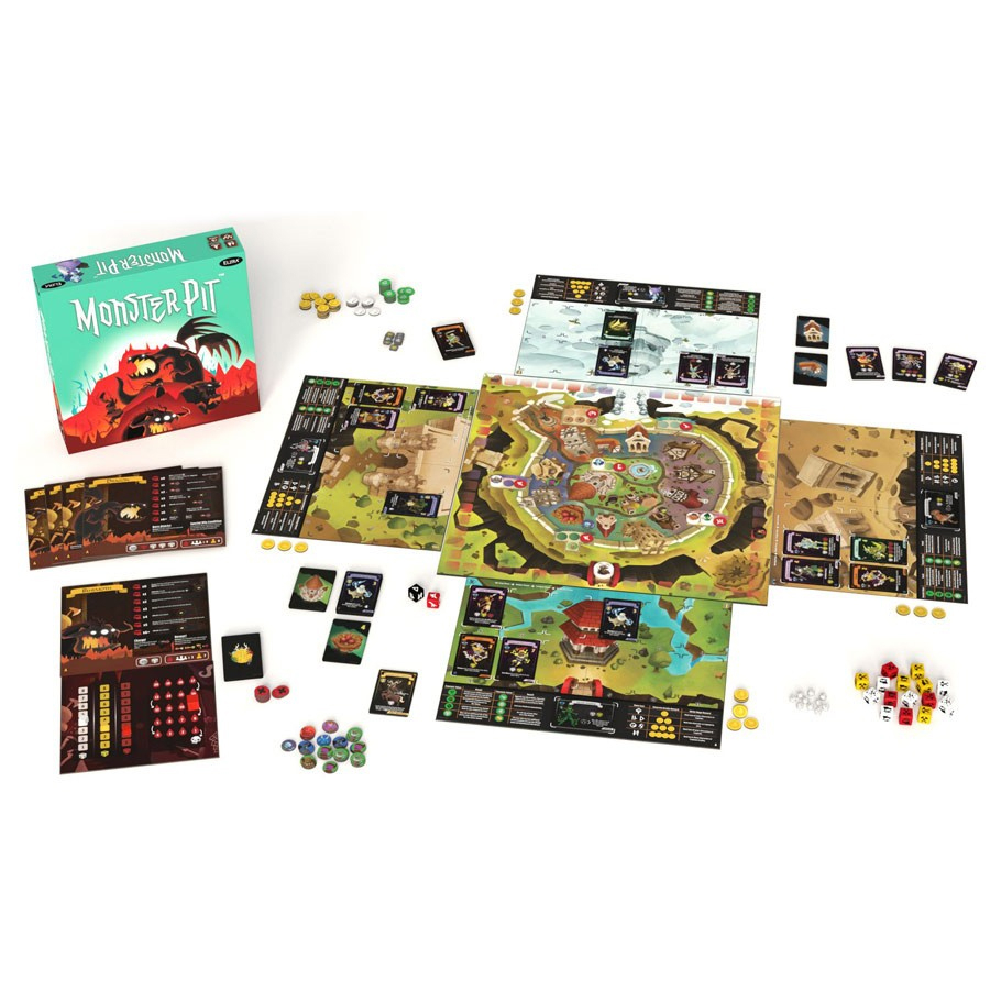 Monster Pit is a cooperative fantasy game for 1 to 4 players. Play as one of six Captains to defend the Citadel from the Monster advancing toward the gates. You will recruit heroes, find treasure, buy equipment, embark on quests for the King, and upgrade your Captain. Strengthen your Outpost by building your tableau of cards. Engage in combat to defeat the Monster and its minions!