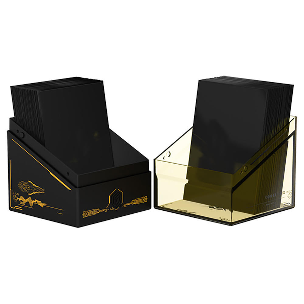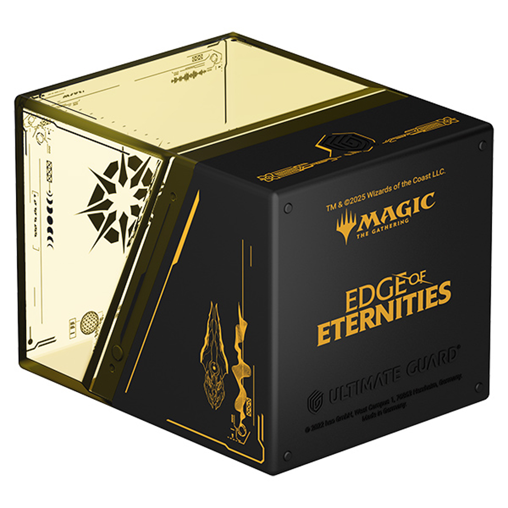 The Boulder 100+ is a durable and rigid deck box with a secure closure that can hold up to 100 double-sleeved or 120 single-sleeved cards in Ultimate Guard Sleeves. Both the completely transparent top of the Boulder and the solid bottom part are printed with officially licensed art from Magic: The Gathering's set Edge of Eternities.