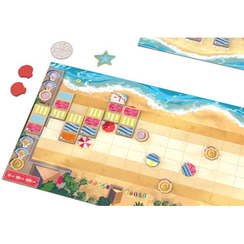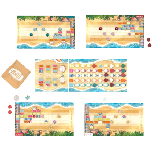 Maui is an easy game to learn and takes about 20 minutes to play, making it a great filler at game parties. The beach theme with tiles depicting various towel patterns drew my attention, and while I thought it might be too simple as a strategy game, several factors make Maui both challenging and fun to play.