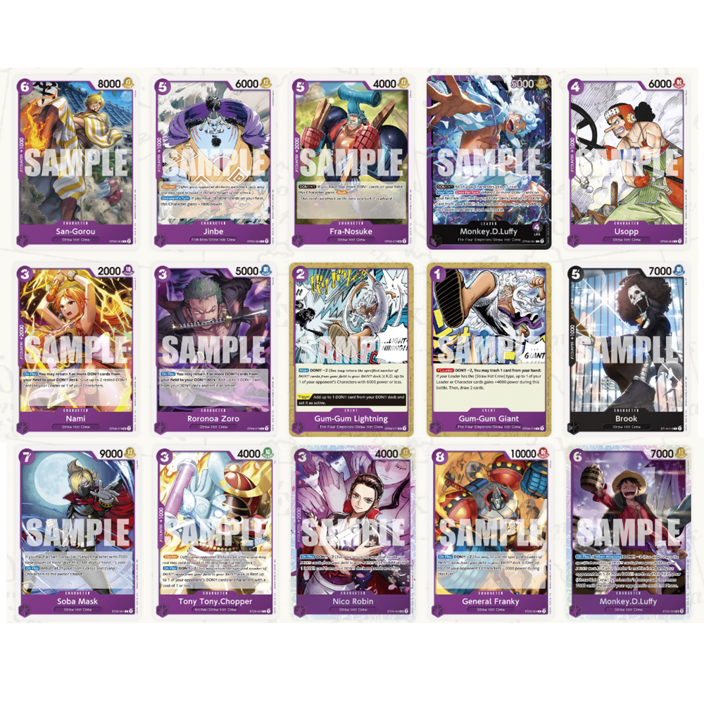 Simple Leader effects and color characteristics make this an ideal product for newcomers! Each deck contains 5 cards with new text! Add these 5 new cards to an existing battle style and evolve your strategy! Includes 1 OP-11 pack, featuring reprints of popular cards from past packs!