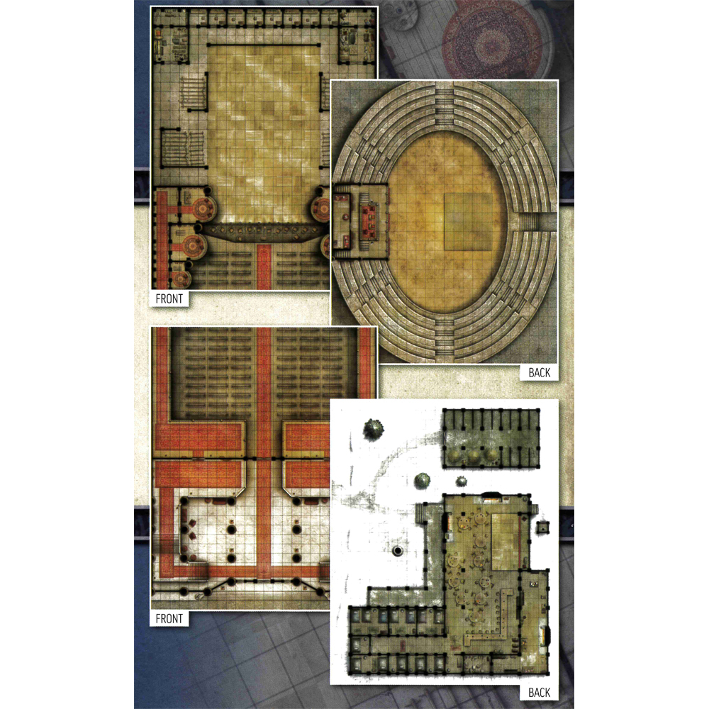 This set includes two flip mats, each measuring 24" x 30" unfolded, and 8" x 10" folded. Usable by experienced GMs and novices alike, Pathfinder Flip-Mat: Showtime Multi-Pack fits perfectly into any Game Master's arsenal!