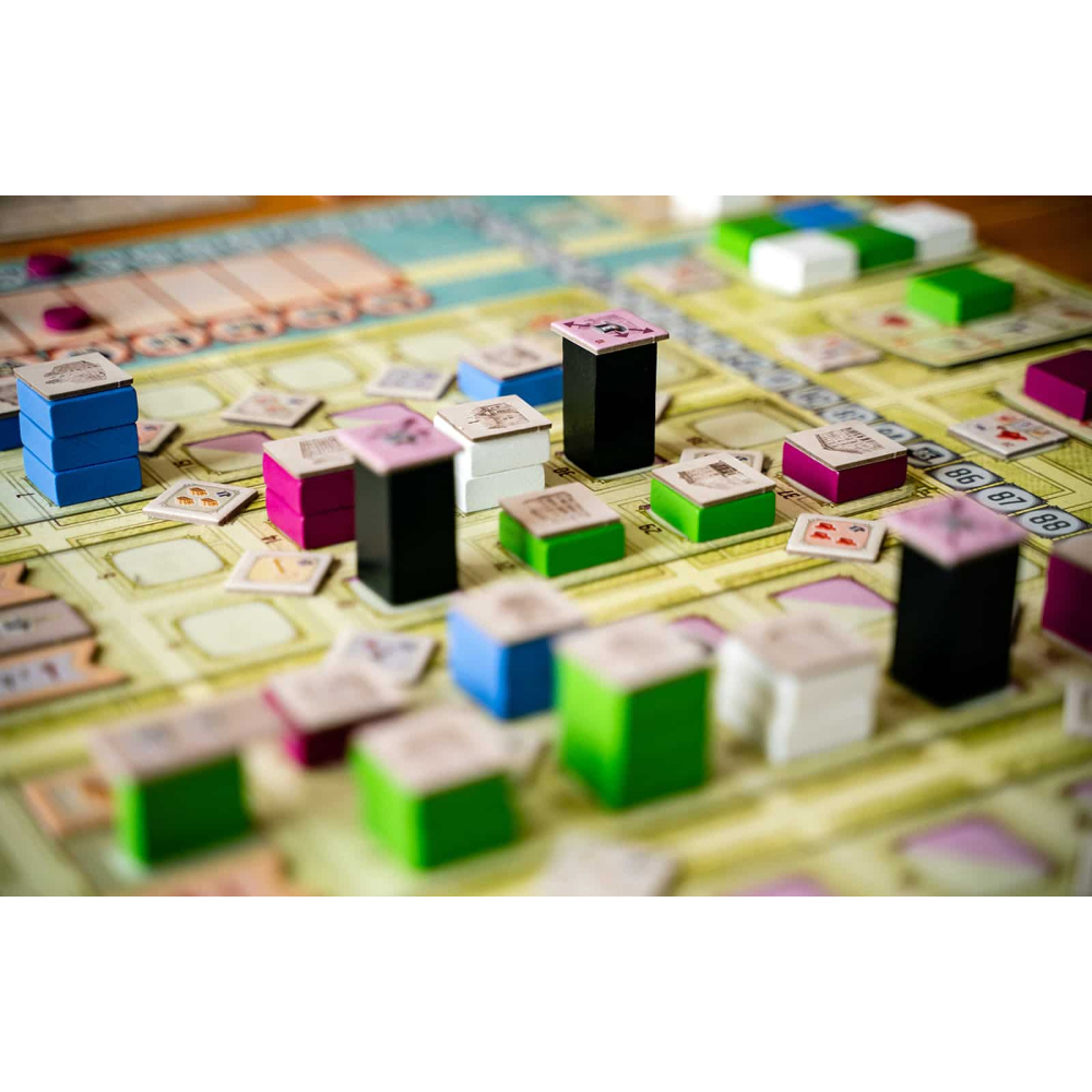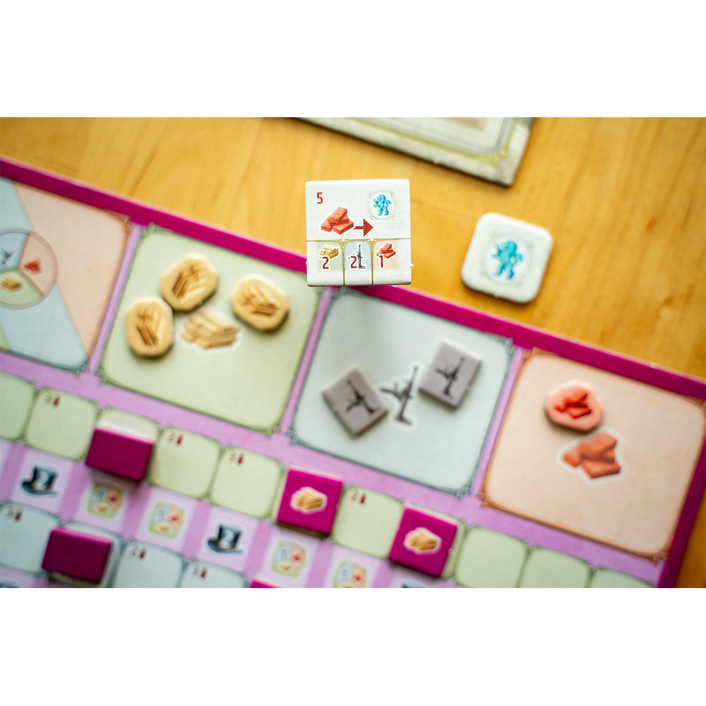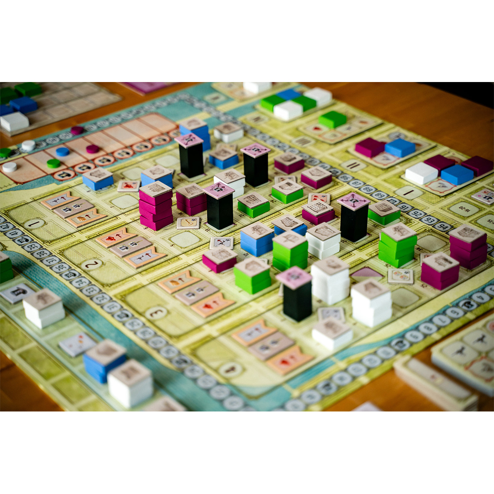 Representing one of the companies created to tackle the problem of raising the buildings of Chicago, it is up to you to gather resources, take on the most attractive projects, and help solve the sanitation crisis of the city. The player with the highest reputation will win, so play strategically to prove you can raise buildings the best in