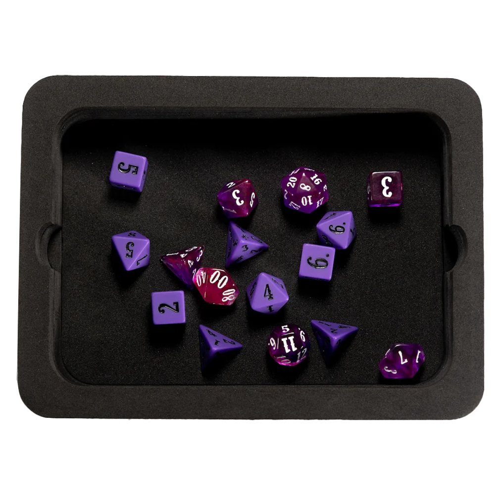 Realize your full potential as a Game Master or Hero with these leveled-up dice sets from Beadle & Grimm's. Each set contains beautiful resin dice specific to your role, and those dice will roll beautifully in the large, EVA-lined tins that double as rolling trays!