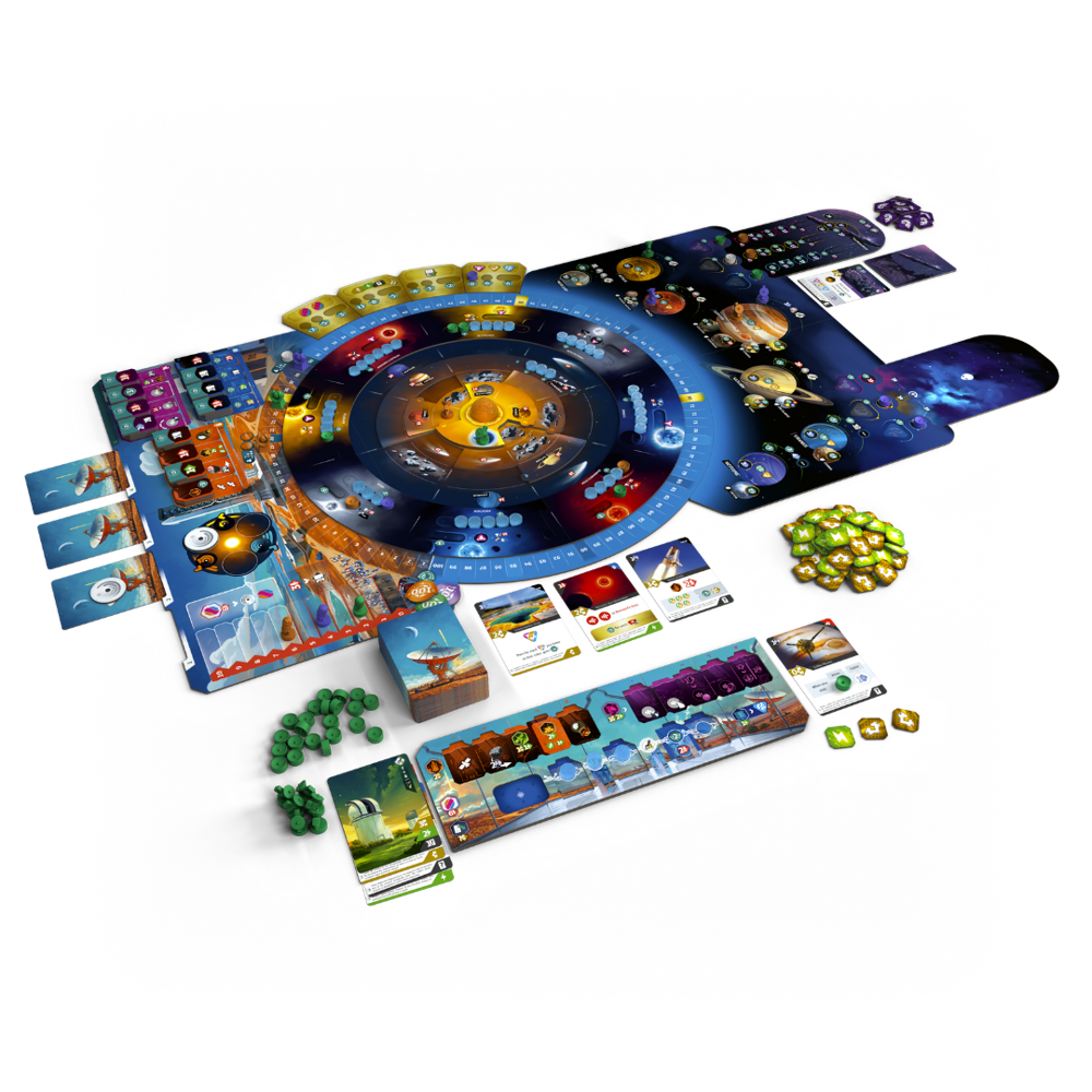 You will also make use of over 200 cards to aid your efforts or focus your research in a particular direction for additional bonuses and rewards. Each card has unique effects and illustrations and depicts real-life technologies, projects, and discoveries (like the ISS, Large Hadron Collider, Perseverance rover, Voyager probe, and many more).