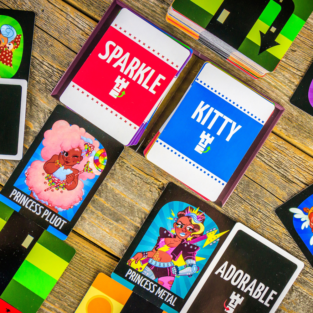 Nobody Puts Princess in a Tower!Sparkle Kitty is an adorably fun, social, and magical spell card game for all ages, sizes and genders. Once upon a time, a group of powerful princesses were captured and locked away in Cursed "No Cursing" towers by the evil queen Sparkle Kitty! All their words and magic spells vanished and became sugar & spice . . . almost everything nice.