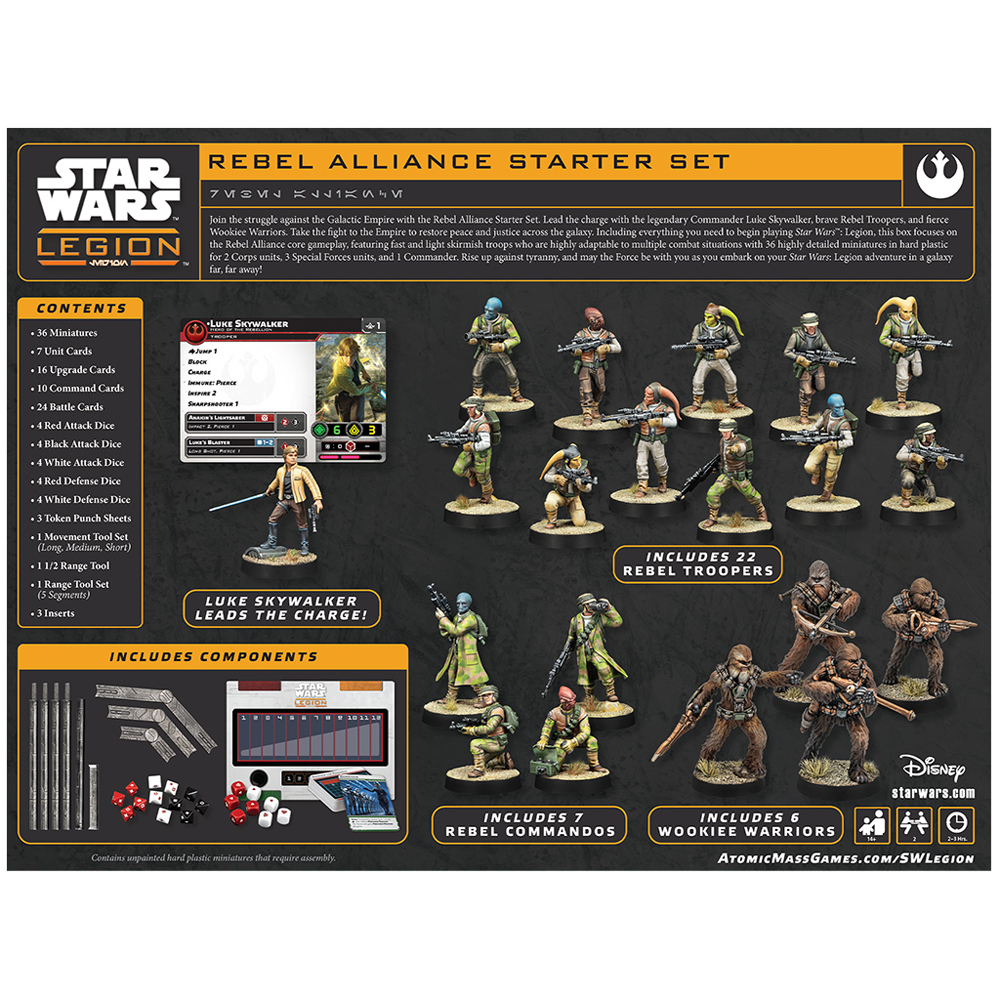 Join the struggle against the Galactic Empire with the Rebel Alliance Starter Set. Lead the charge with the legendary Luke Skywalker, brave Rebel Troopers, and fierce Wookiee Warriors. Take the fight to the Empire and turn the ride to restore peace across the galaxy. The Rebellion Alliance Starter Set contains a 600-point Recon-level army and all the dice, templates, tools, and tokens a player needs to begin playing their first games of Star Wars: Legion. Rise up against tyranny, and may the Force be with you as you embark on your Star Wars: Legion adventure in a galaxy far, far away!