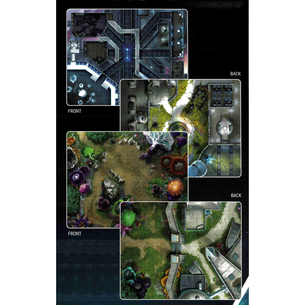 Playtest the new edition of Starfinder in style with this collection of two double-sided Flip-Mats featuring four key encounter areas from not one, but two Starfinder Playtest Adventures: A Cosmic Birthday and Empires Devoured! One Flip-Mat features a futuristic space station and a science-fantasy cityscape-both abandoned and ready for investigation! The other features a dense fungus jungle and a futuristic settlement bordering the jungle, for exciting sci-fi adventures on the borderlands!