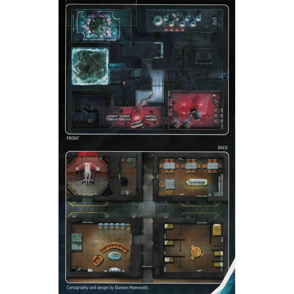 Suit up and get ready to explore the galaxy's most iconic and dangerous space stations with Starfinder Flip-Mat: Space Station. One side of this mat showcases the interior of a station you could find almost anywhere in the galaxy, complete with a mess hall, storage, and even a docked fighter. This side also matches up perfectly to Starfinder Flip-Mat: Basic Terrain, allowing you to construct an even larger station. The other side of the mat is a grimmer station or research outpost, filled with the leftovers of deadly experiments and gruesome battles. Both sides can be turned into a set piece for almost any science-fantasy adventure!