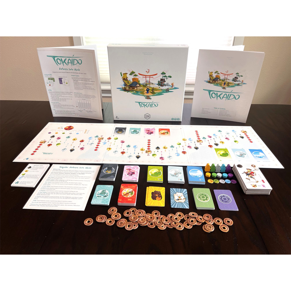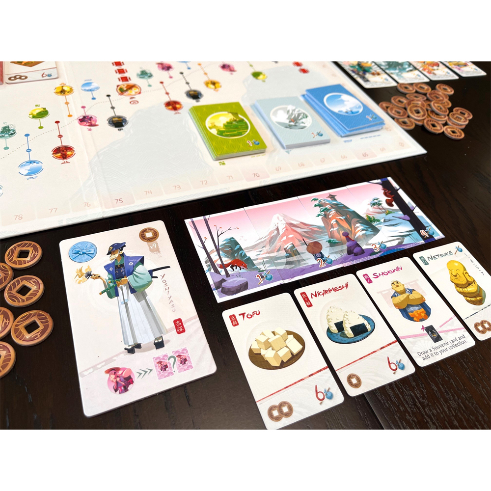 Tokaido, you are a traveler in ancient Japan. You will follow the prestigious Tokaido - a road between Kyoto and Edo (Tokyo) - as you try to have a rich and fulfilling experience. Pass through magnificent countryside, taste delicious culinary specialties, purchase souvenirs, benefit from the virtues of hot springs, and have unforgettable encounters on your journey.